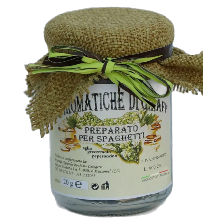 The preparation for spaghetti is a product made entirely by Aromatiche di Girafi, it is composed of three main elements such as:
